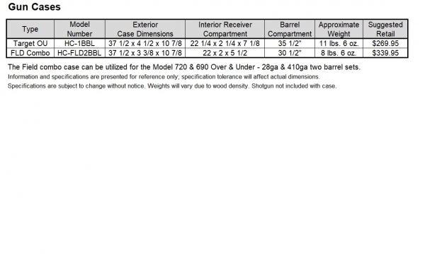 The Single Barrel Case is designed to fit all Over & Under and Century III models. The seperate forend compartment allows for easier assembly and disassembly of the shotgun. The barrel compartment will accomodate 34" barrels with extended choke tubes. Filler blocks are provided for shorter length barrels.