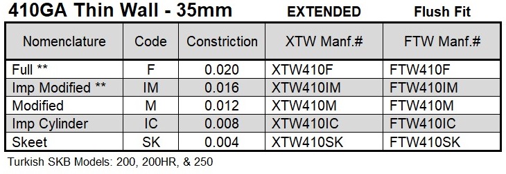 | XTW410SK | Thin Wall Extended Choke Tube 410ga Skeet - 35mm |